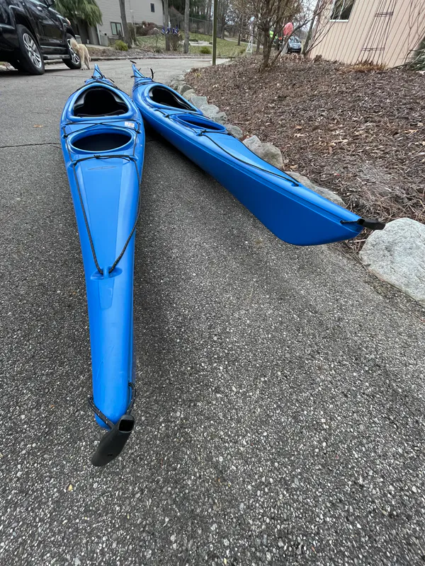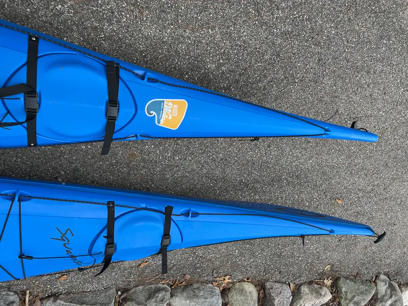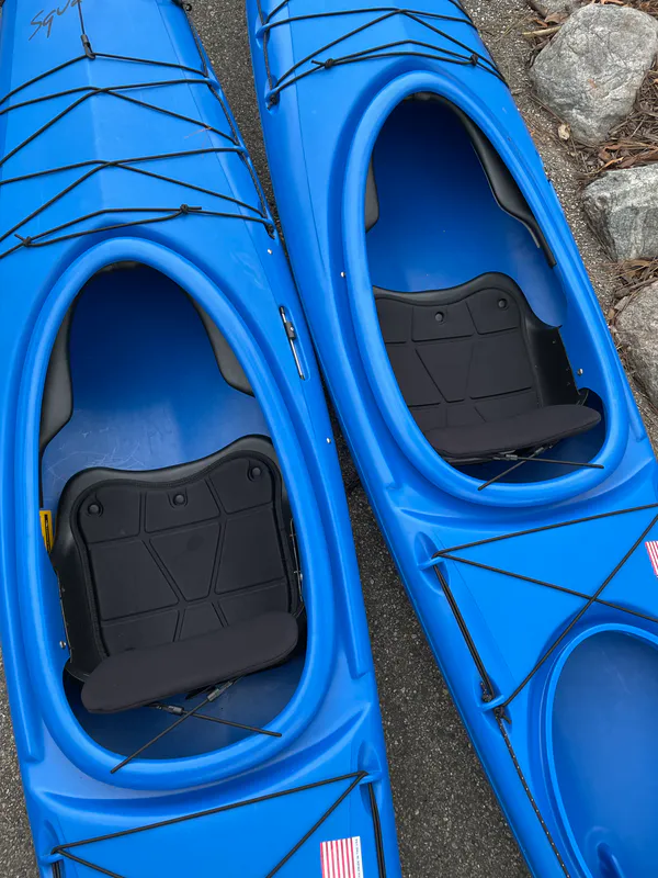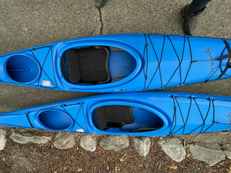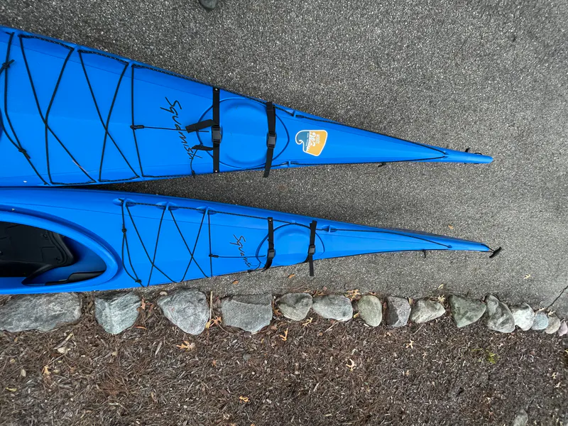 The Squamish is a super playful boat for day trips, overnight tours, rock gardens, and wavy conditions. Tracks well and allows for active paddling. Although they are great boats for smaller paddlers, including tweens, they don't fit our needs on tours well which is why we are selling. Both are barely used Current Designs Squamish sea kayaks in excellent condition. Just slight scratches on them from gravel beach and on/off trailers. Everything solid and functioning.